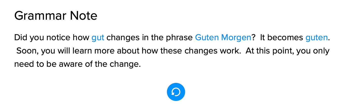 Now back to class, Mangolanguages at the outset offers lots of repetition alongside some notes (see below).